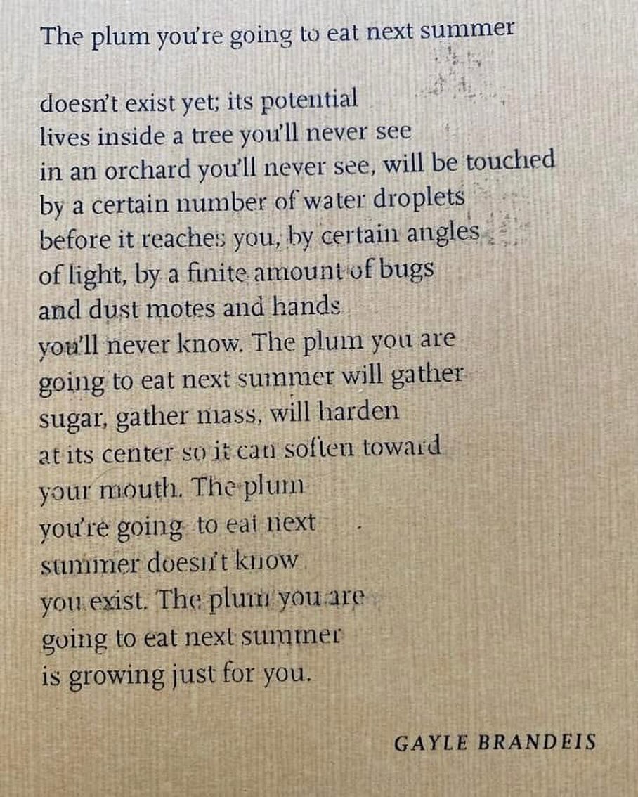 Author Gayle Brandeis recently released a poem The plum you’re going to eat next summer (link, image):